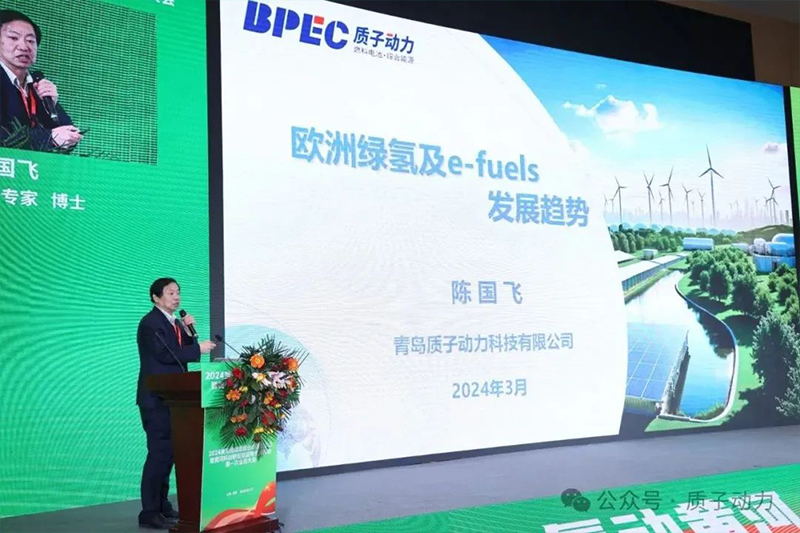 會上,質(zhì)子動力董事長陳國飛博士就歐洲綠氫及e-fuels的發(fā)展趨勢進行了系統(tǒng)分享,話題破局氫能發(fā)展中的問題,探討氫能產(chǎn)業(yè)創(chuàng)新發(fā)展,聚焦“雙碳”背景下氫能應用潛力及產(chǎn)業(yè)化路徑等前沿熱點,共商發(fā)展謀合作。