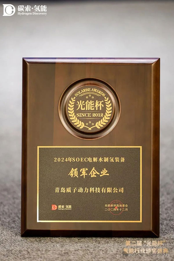 近日,由碳索氫能主辦的“光能杯”2024年氫能行業頒獎盛典在北京隆重舉行,質子動力獲得了光能杯“SOEC 電解水制氫裝備領域的領軍企業”榮譽。